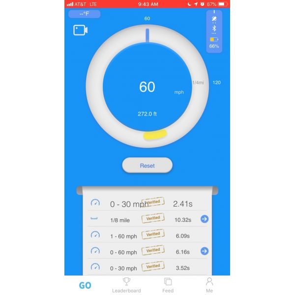 Делайте замеры разгона с 0 до 100 км/ч, с 100 до 200 км/ч, с 0 до 60 км/ч, за какое время Ваш автомобиль пройдет 1⁄4 мили и 1⁄2 мили и другие скоростные диапазоны!