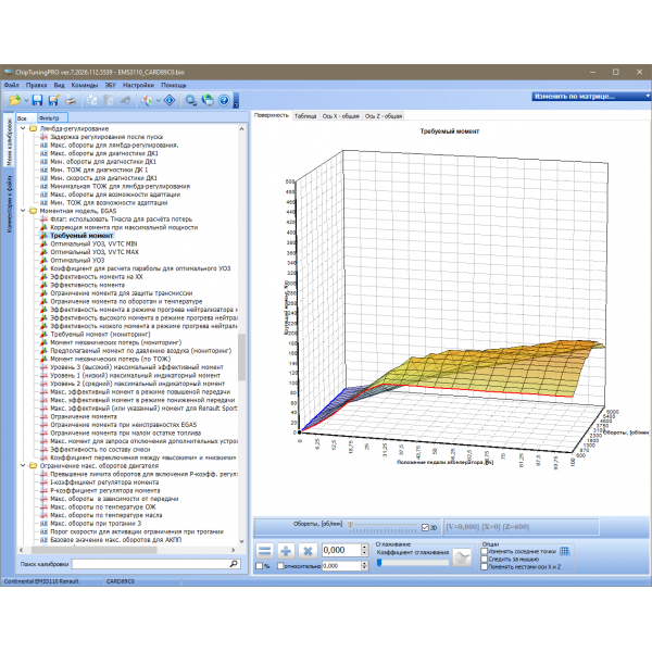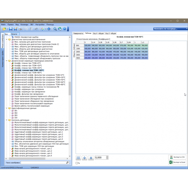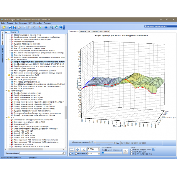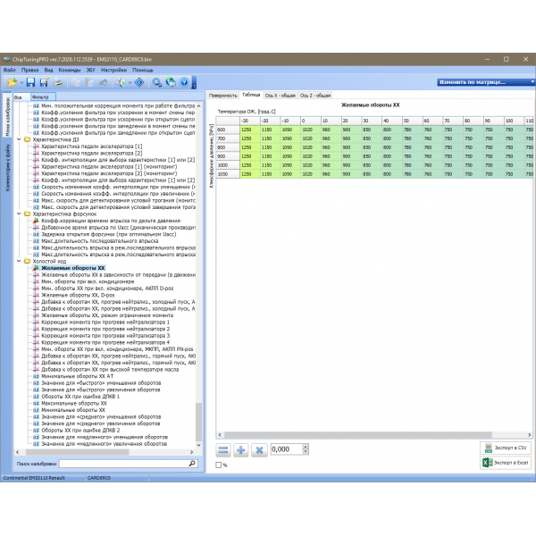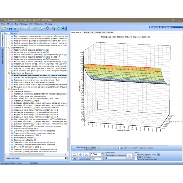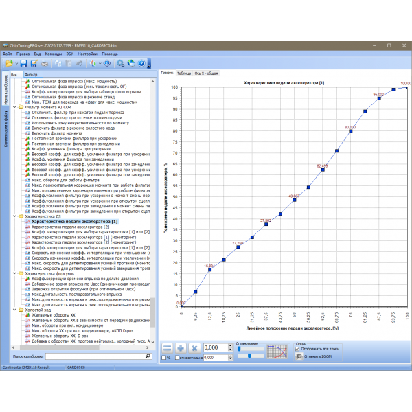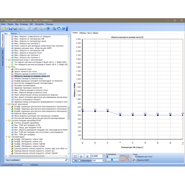 Для изменения доступно более 250 наиболее важных калибровок системы!